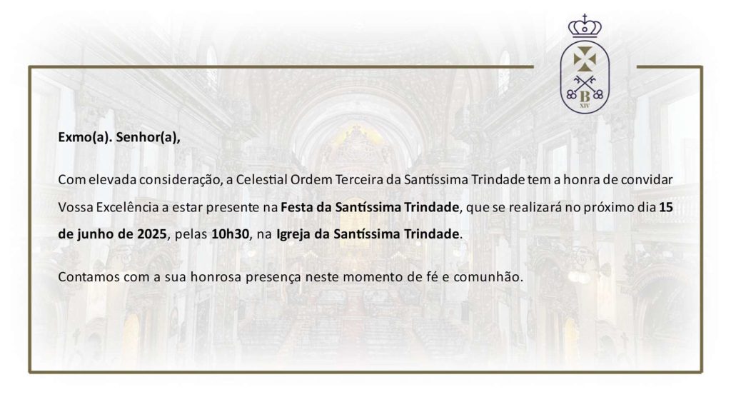 Convidamos todos os Irmãos da Celestial Ordem Terceira da SS.(…)